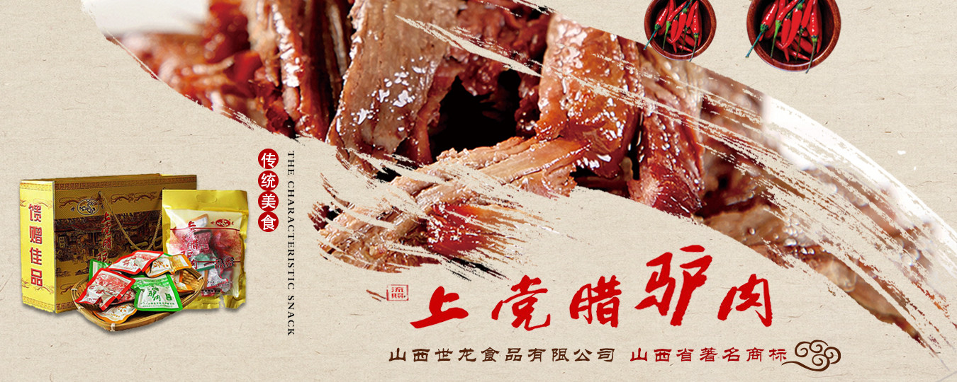 山西世龍食品有限公司是以“世龍”牌上黨臘驢肉系列產(chǎn)品為主導(dǎo),集科研開發(fā)、良種繁育、基地建設(shè)、生產(chǎn)加工、市場營銷于一體的農(nóng)業(yè)產(chǎn)業(yè)化國家重點龍頭企業(yè)、全國農(nóng)業(yè)標(biāo)準(zhǔn)化示范區(qū)、全國食品行業(yè)優(yōu)秀龍頭企業(yè)、山西省農(nóng)業(yè)產(chǎn)業(yè)化重點龍頭企業(yè)、山西省農(nóng)產(chǎn)品加工“513”工程單位、山西省帶動貧困地區(qū)基地建設(shè)重點龍頭企業(yè)、山西省民營畜牧業(yè)示范基地、山西省質(zhì)量信譽AAA級單位、山西省重合同守信用單位、山西省消費者協(xié)會誠信單位、山西省民營科技企業(yè)。